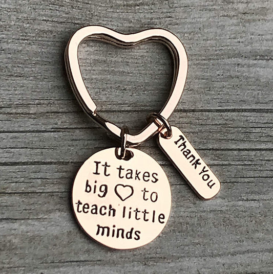 Teacher Keychain, It Takes a Big Heart to Help Shape Little Minds Rose Gold Jewelry
