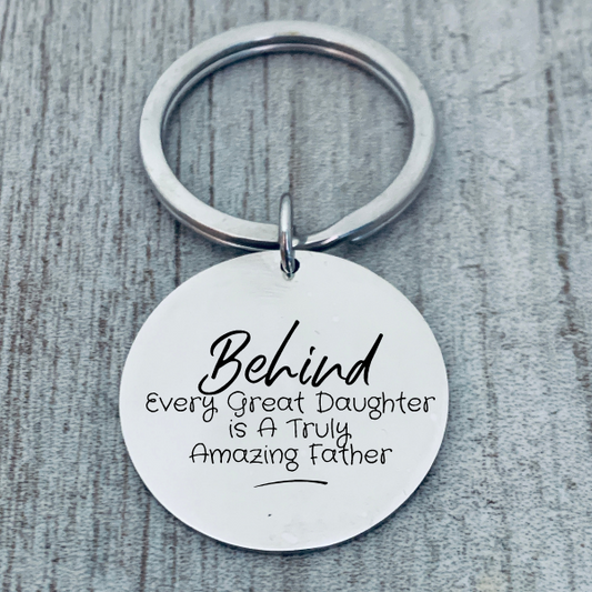 Dad Keychain- Behind Every Great Daughter is a Truly Amazing Father
