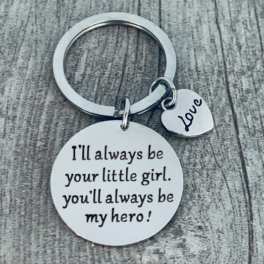 Dad Keychain- I'll Always Be Your Little Girl. You'll Always Be My Hero