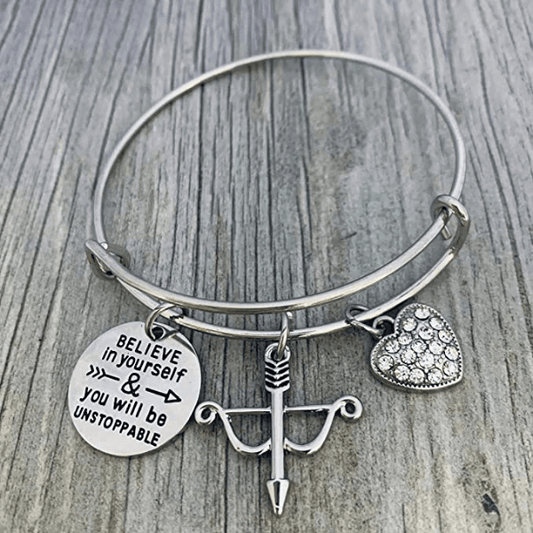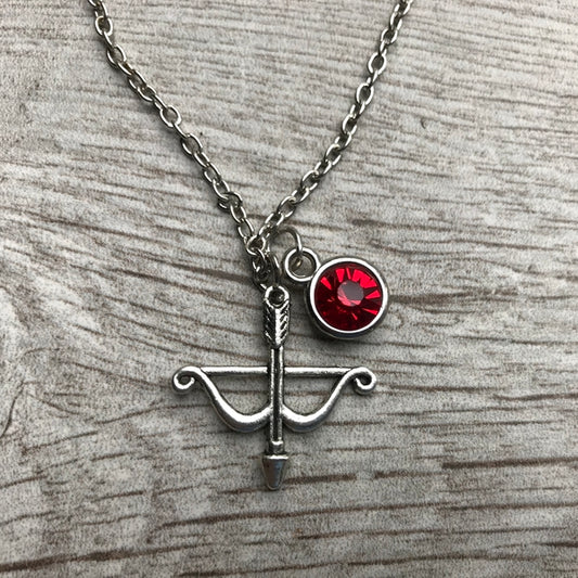 Personalized Archery Bow and Arrow Pendant- Birthstone