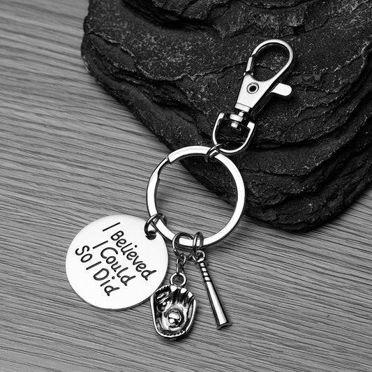 Softball I Believed I Could So I Did Bat & Ball Charm Keychain