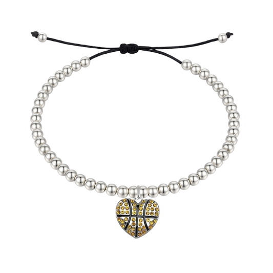 Basketball Beaded Silver Hanging Charm Slider Bracelet