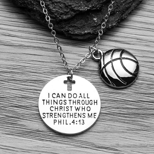 Basketball Faith I Can Do All Things Through Christ Who Strengthens Me Necklace
