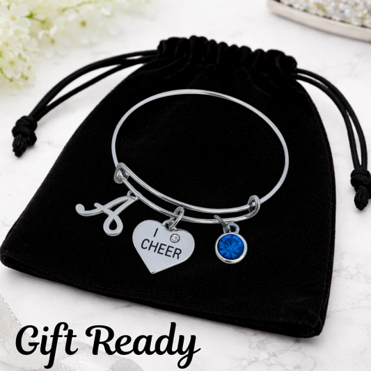 Personalized Cheer Infinity Charm Bracelet with Letter Charm - Pick Color