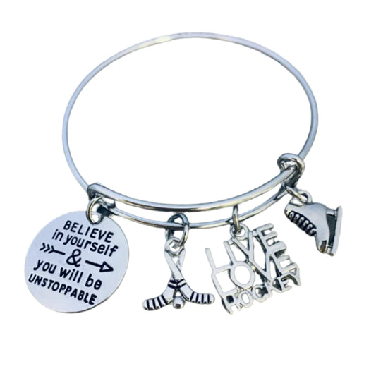 Girls Ice Hockey Bangle Bracelet - Believe In Yourself
