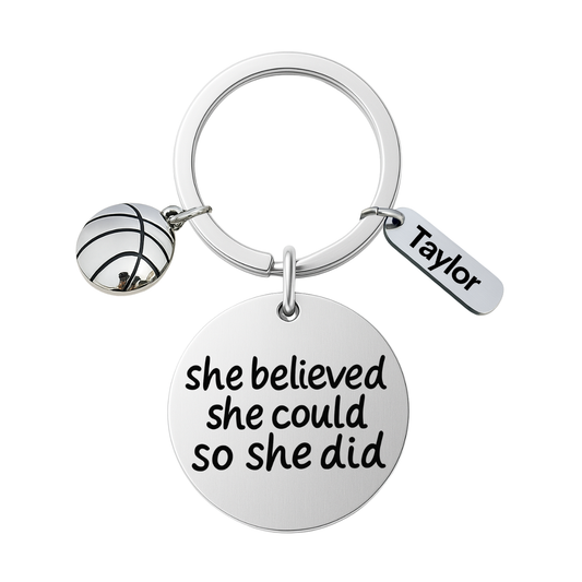Girls Basketball Keychain with Number Engraved Charm for Players