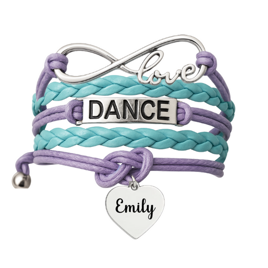 Custom Engraved Dance Infinity Bracelet - Pick Colors