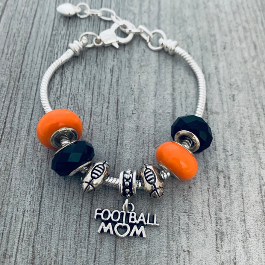 Custom Football Mom Beaded Bracelet - Pick Colors