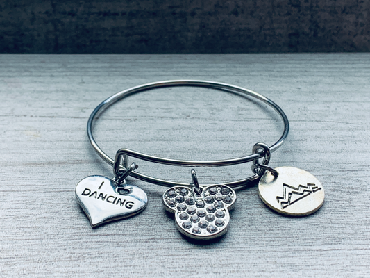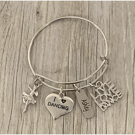 Custom Dance Charm Bangle Bracelet with Engraved Charm
