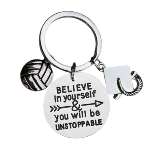 Sports Graduation Keychain -Believe In Yourself & You Will Be Unstoppable- Pick Activity