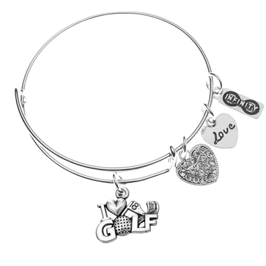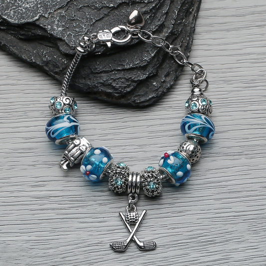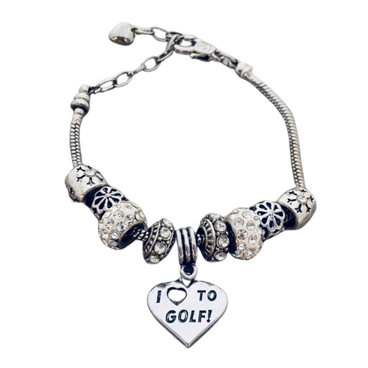 Golf Adjustable Gold CZ Beaded Charm Bracelet