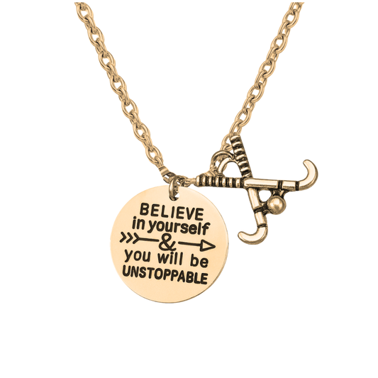 Personalized Field Hockey Stick Necklace with Letter Charm