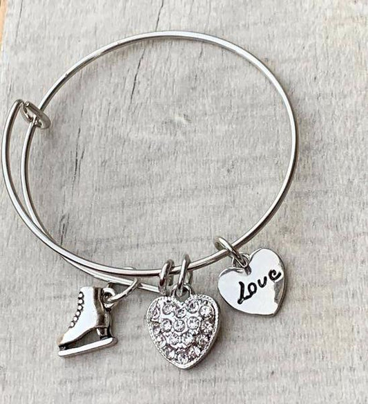 Personalized Engraved Figure Skating Heart Rope Bracelet