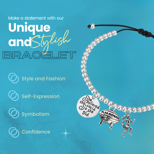 Flag Football Bangle Bracelet – Adjustable Silver Charm Jewelry Gift