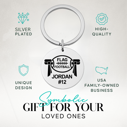Personalized Flag Football Keychain – Custom Engraved Player Charm