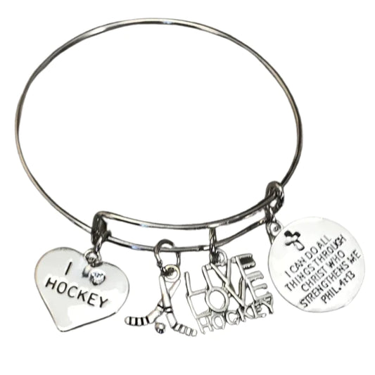 Ice Hockey Charm Bracelet, I Can Do All Things Through Christ Who Strengthens Me