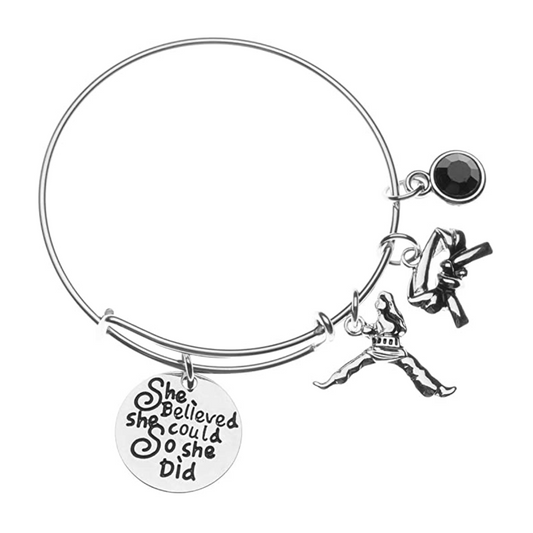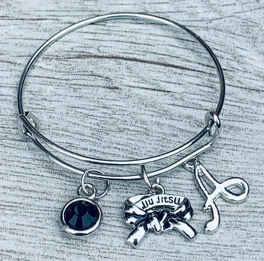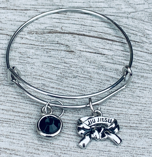 Martial Arts Charm Black Belt Bangle Bracelet
