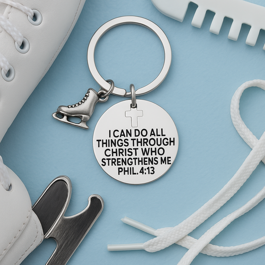 Figure Skating I Can Do All Things Through Christ Who Strengthens Me Keychain