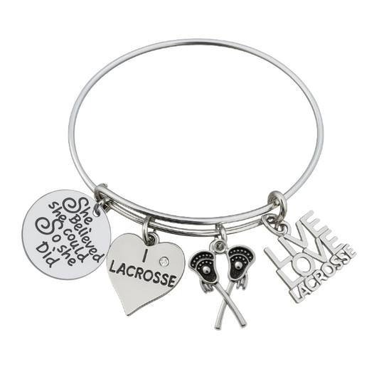 Lacrosse Adjustable Silver Beaded Charm Bracelet