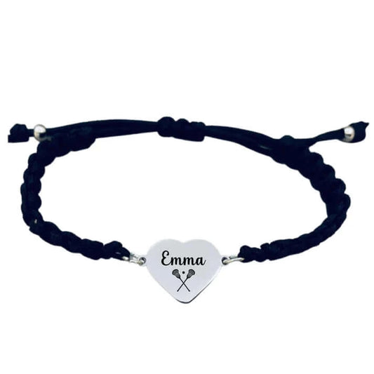 Personalized Engraved Lacrosse Adjustable Rope Bracelet - Pick Color