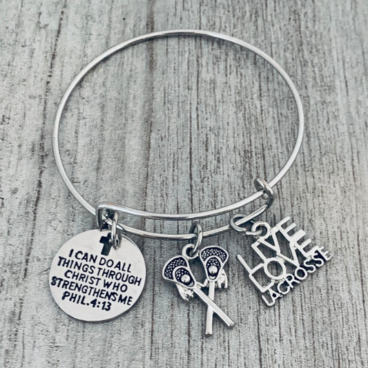 Lacrosse Charm Bracelet - I Can Do All Thins Through Christ