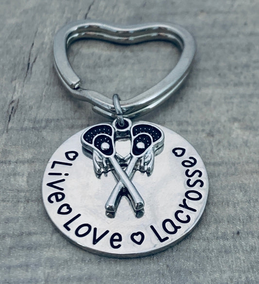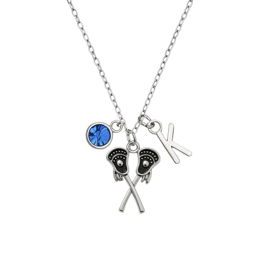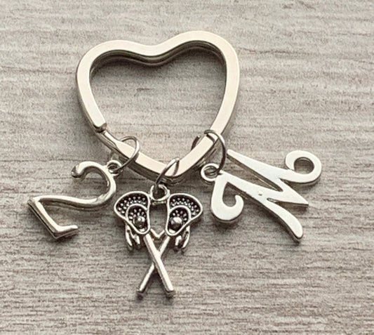 Personalized Lacrosse Zipper Pull Keychain with a Letter Charm