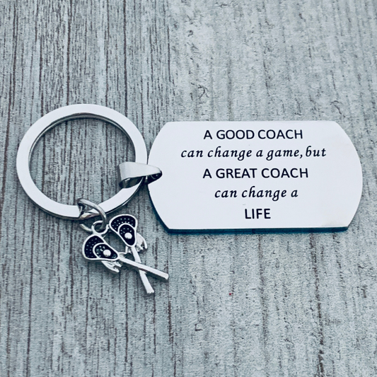 Lacrosse Coach Keychain, A Good Coach Can Change a Game But a Great Coach Can Change a Life