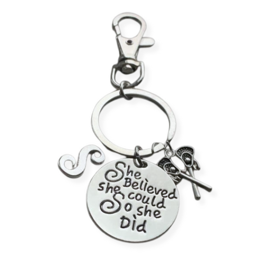 Lacrosse Zipper Pull Keychain with Letter Charm