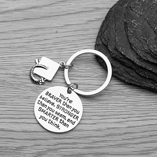 Graduation Keychain, Inspirational You’re Braver Than You Believe, Stronger Than You Seem & Smarter You Think Jewelry