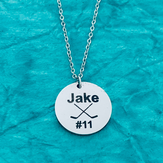 Personalized Engraved Ice Hockey Stick Necklace - Round Shape
