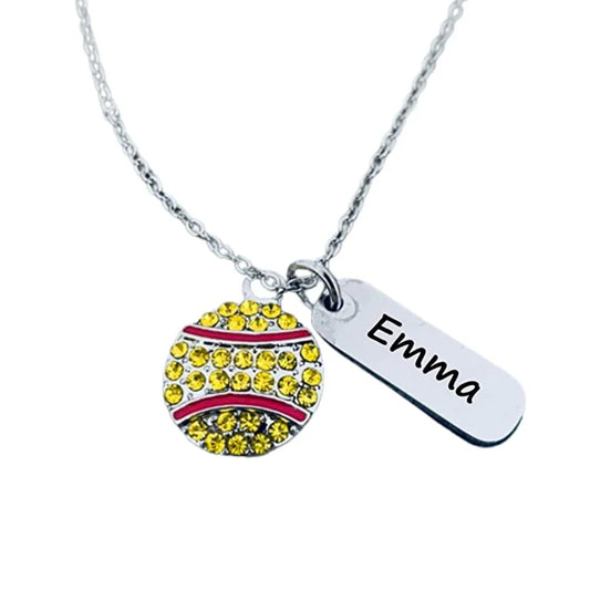 Personalized Engraved Softball Rhinestone Necklace