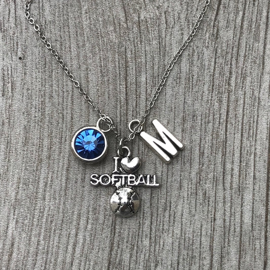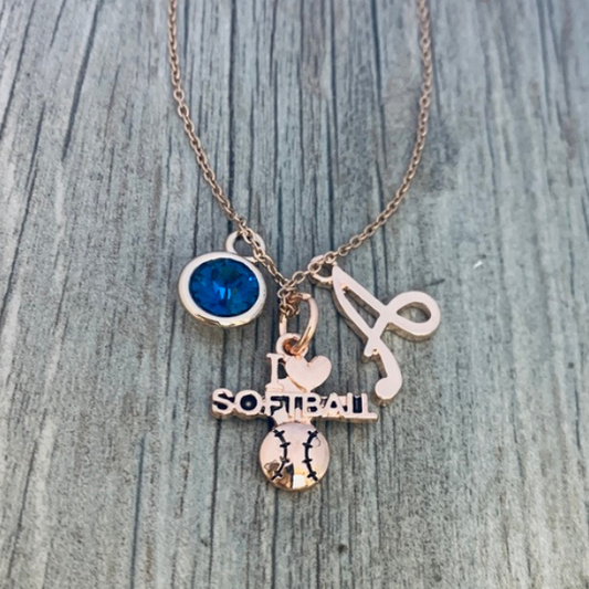 Personalized I Love Softball Necklace - Pick Charms
