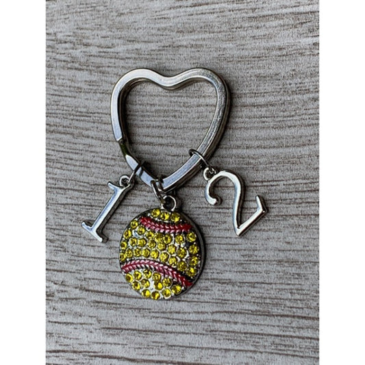 Personalized Softball Heart Keychain - Number Charms