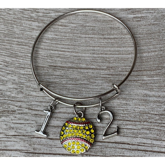Personalized Softball Bangle Bracelet with Number Charms