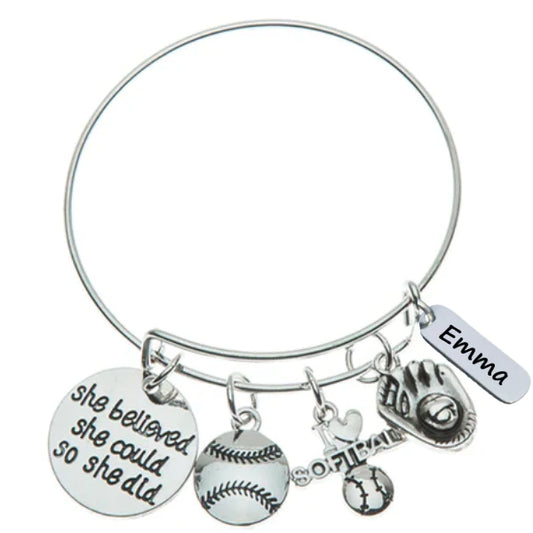 Personalized Engraved Softball She Believe She Could So She Did Charm Bracelet
