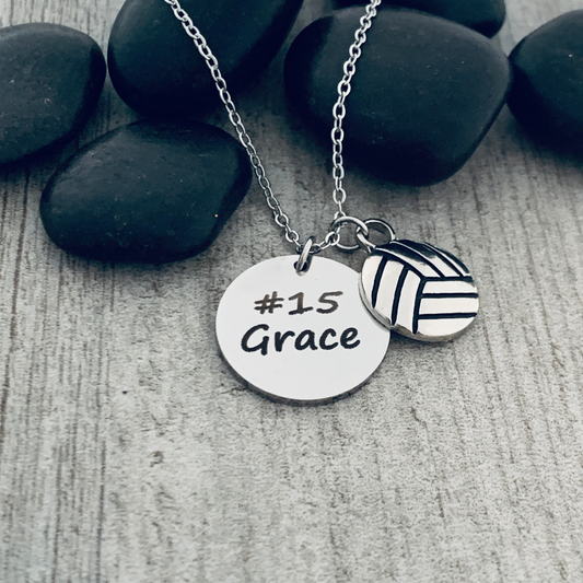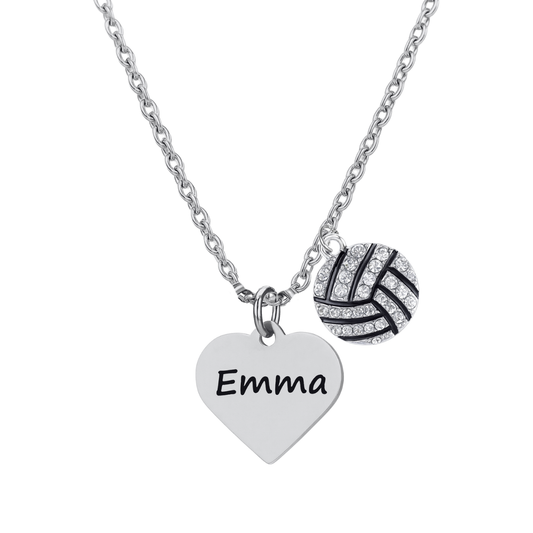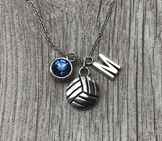 Personalized Volleyball Necklace- Letter & Birthstone Charm