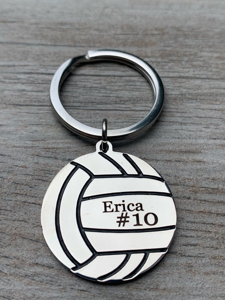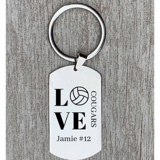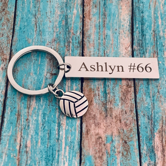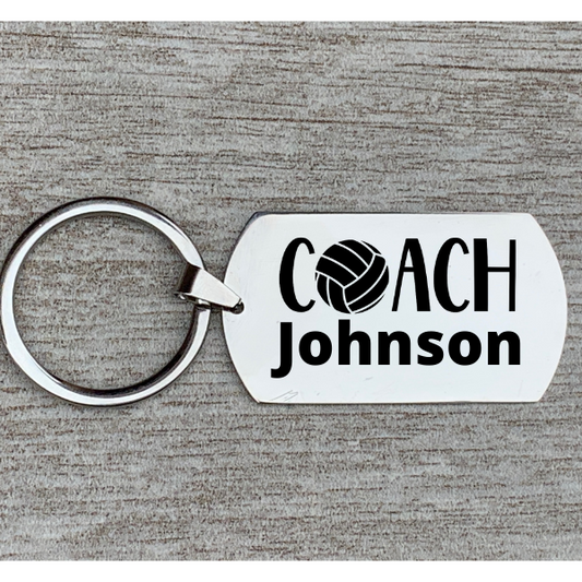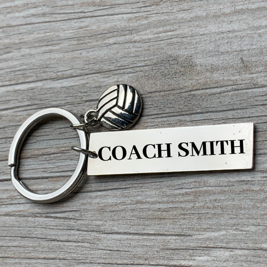 Personalized Engraved Volleyball Coach Keychain with a Ball Charm
