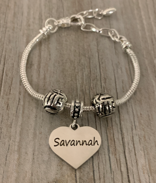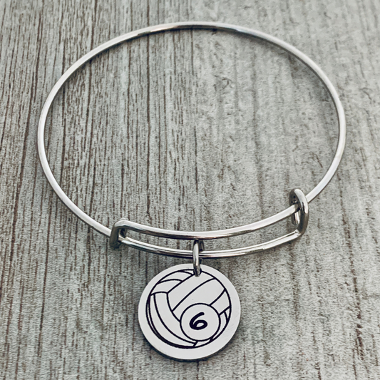 Personalized Stainless Steel Volleyball Bracelet with Engraved Charm