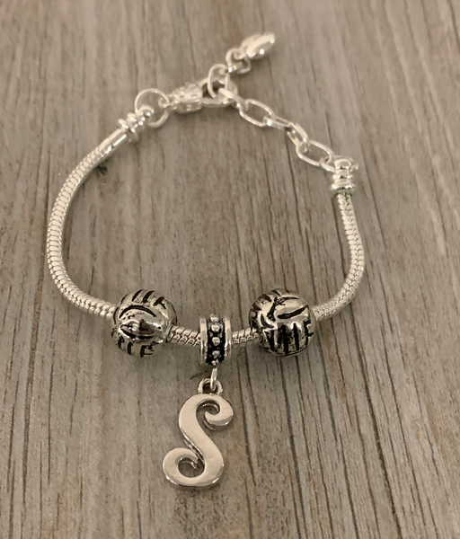 Personalized Volleyball Initial Charm Bracelet - Pick Color