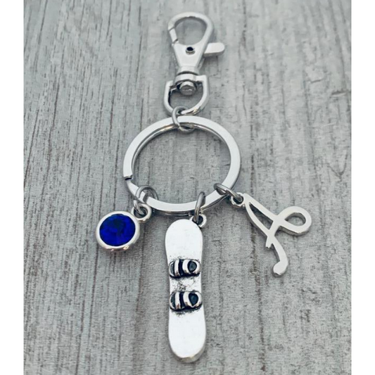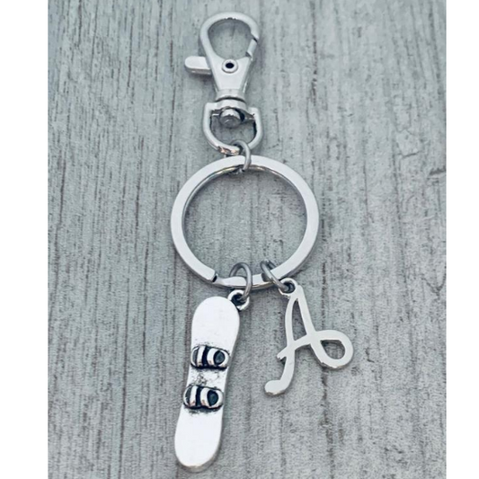 Personalized Snowboarding Zipper Pull Keychain a Letter Charm