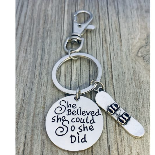 She Believed She Could So She Did Keychain – Ski, Snowboard & Love to Ski Inspirational Keychain | Sportybella