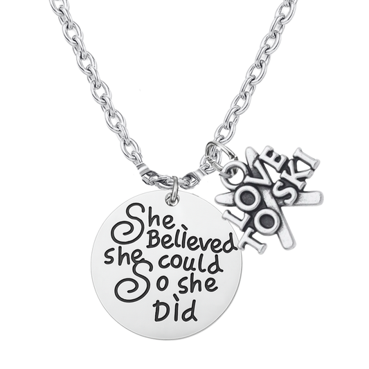 She Believed She Could So She Did Ski Necklace – Inspirational Skier Pendant | Sportybella