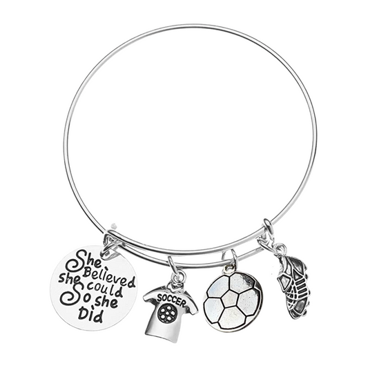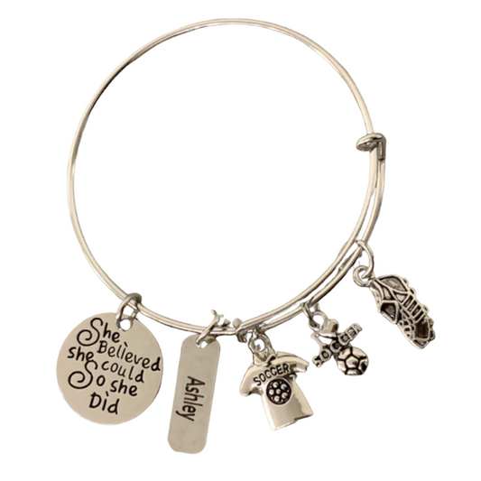 Personalized Engraved Soccer Bracelet- She Believed She Could