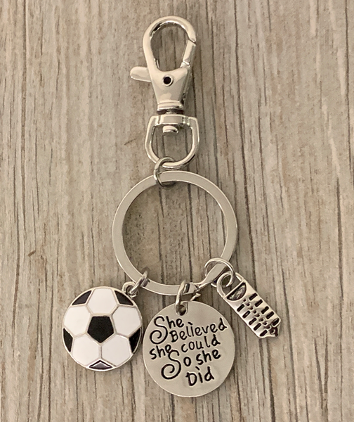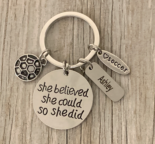 Personalized Engraved Soccer Keychain- She Believed She Could