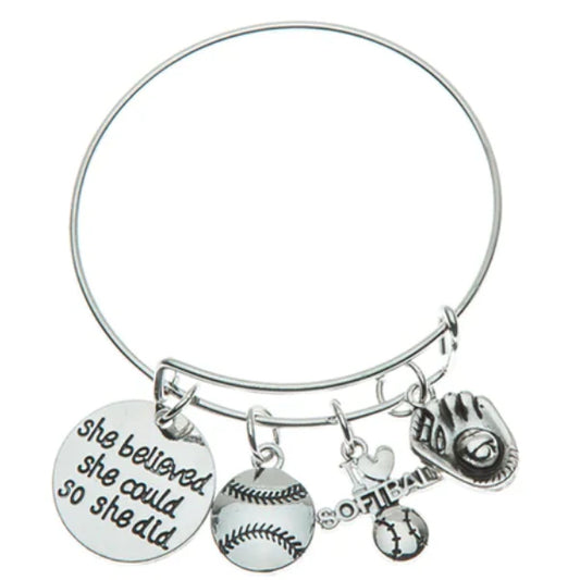 Personalized Engraved Softball She Believe She Could So She Did Charm Bracelet