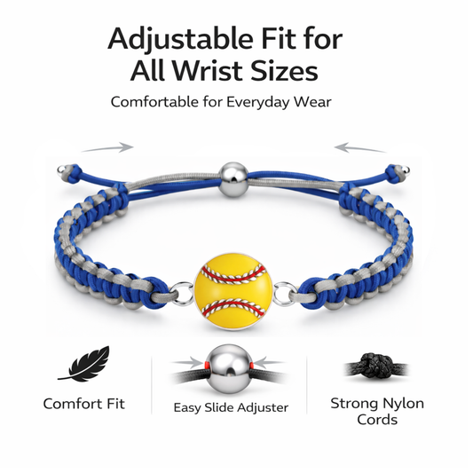 Softball Bracelet - Adjustable Charm Rope Bracelet
