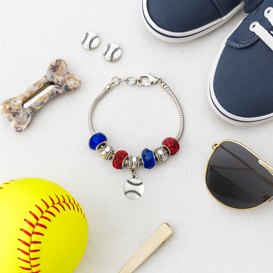 Softball Interchangeable Snap Charm Bangle Bracelet