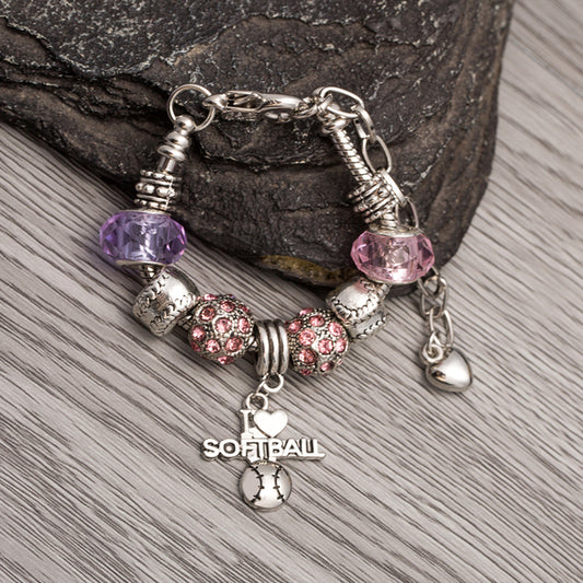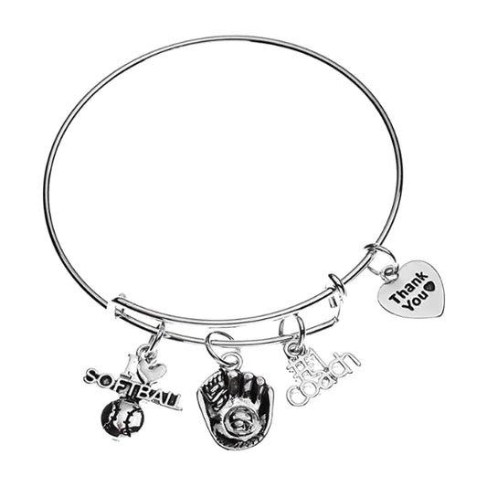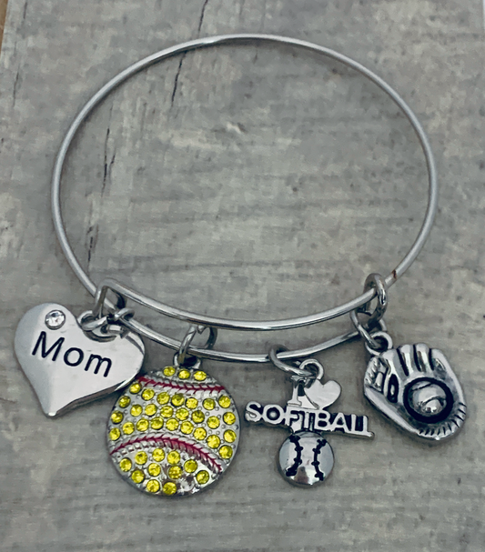 PERSONALIZED SOFTBALL BANGLE BRACELET WITH FREE LETTER CHARM