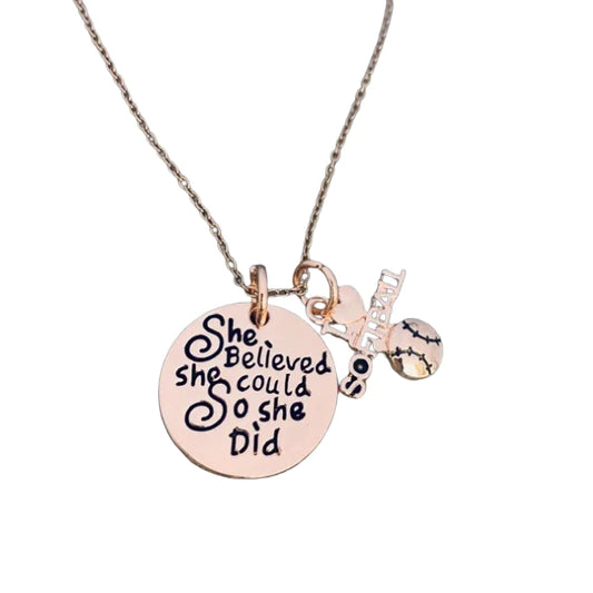 Softball She Believed She Could So She Did Necklace - Pick Color & Charm