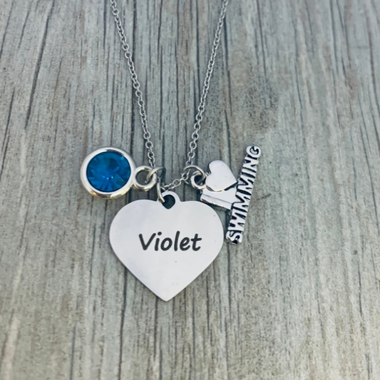 Personalized Girls Swim Necklace with Birthstone Charm
